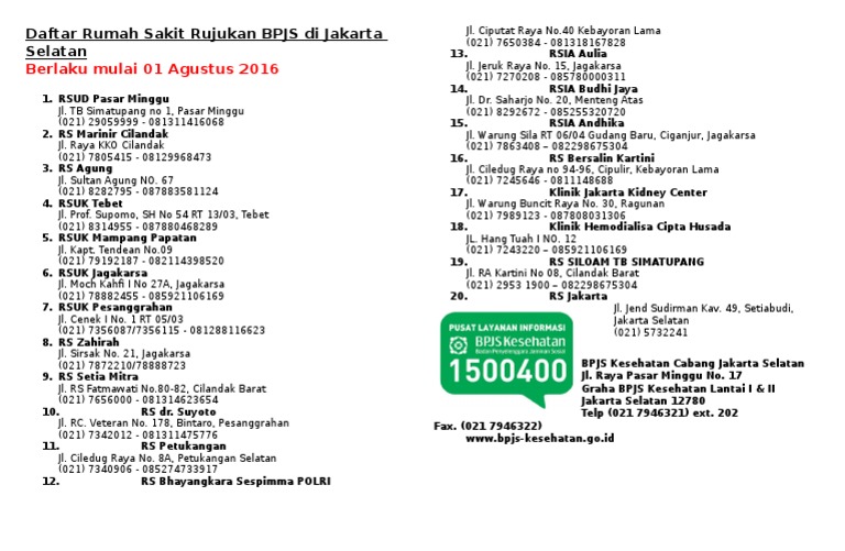 Cara Daftar Bpjs Di Rs Dharmais . Daftar Rumah Sakit Rujukan Bpjs Di Jakarta Selatan 22 08 2016
