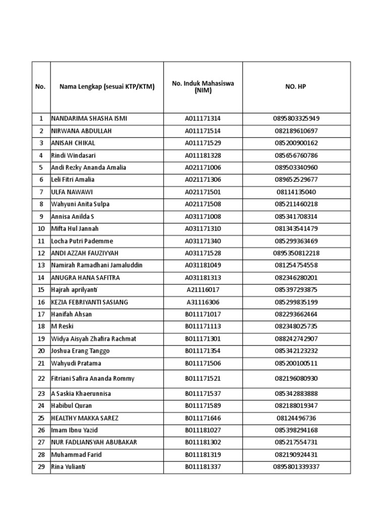 - Daftar Calon Penerima Beasiswa Mahasiswa Sul - Sel Tahun ... - Para Pengusul Bpum Tersebut Adalah: