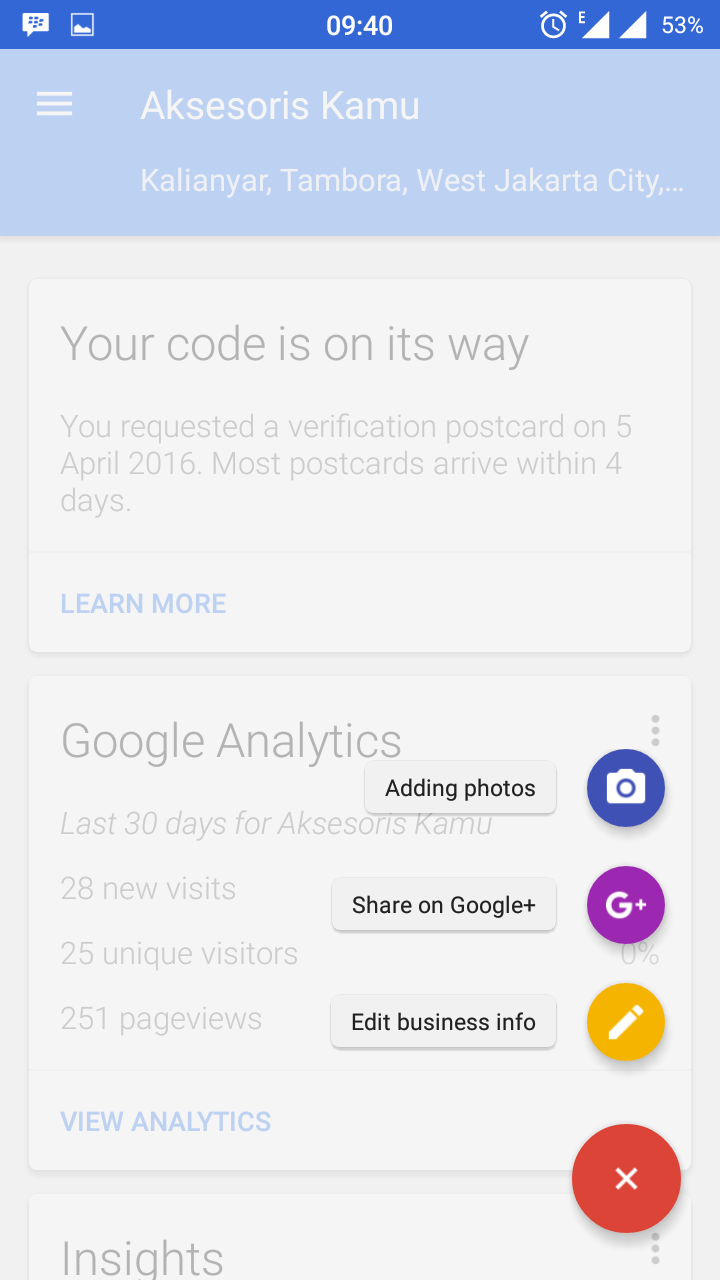 Cara menambah info usaha di google bisnisku. Cara menandai lokasi tutup di google maps. Menurut saya, cara paling mudah adalah melalui sms, begitu anda mendapat sms balasan dari google, masukkan pin yang dikirimkan google. Langkah ketiga untuk membuat alamat kita ada di google map adalah memasukkan alamat rumah anda, lokasi bisnis ataupun tempat usaha anda. Cara membuat atau menambah lokasi baru di google maps. Beri tahu kami, jika anda adalah seorang developer dengan total download aplikasi sebanyak 100.000 lebih. Pastikan anda sudah memiliki aplikasi google jam buka, situs website dan beberapa foto tentang tempat usaha bisnis anda yang ingin ditambahkan di. Masukkan kode verifikasi yang terdapat dalam kartu pos. Kini anda telah mengetahui tiga cara menambahkan tempat di google maps. Anda bisa menambahkan lokasi bisnis, alamat rumah, tempat atau bangunan penting seperti masjid, sekolahan dan lainnya di google maps agar mudah ditemukan oleh siapapun yang ingin mencari apa yang anda tawarkan maupun mencari. Dengan daftar google bisnisku, calon konsumen dapat menemukan lokasi sekaligus informasi seputar bisnis anda. Cara daftar lokasi di google maps dengan google bisnisku. Di era digital seperti saat ini, promosi online merupakan salah satu cara memperkenalkan usaha kamu lebih luas lagi. Aplikasi chating (whatsapp, telegram, dsb) dan social media (twitter, facebook, instagram, dsb) menjadi salah satu sarana tercepat mempromosikan usaha kamu. Mencadangkan chat whatsapp di google drive. Cara mudah menampilkan lokasi usaha di google maps. Jika lokasi yang anda kelola untuk sementara waktu tutup atau selamanya tidak akan beroperasi lagi, anda bisa menandai lokasi tersebut tutup permanen atau permanently closed tanpa perlu menghapusnya. 4.1 bagaimana jika profil google bisnisku sudah diverifikasi oleh orang lain? Panduan cara share lokasi di google maps ke whatsapp, messenger dan lainya. Cara membuat barcode lokasi di google maps. Cara super mudah menandai lokasi usaha di google maps. 4 cara verifikasi google bisnisku dengan kartu pos. Ada tiga cara menambahkan lokasi bisnis ke google maps dengan mudah. Jika anda sudah memiliki hak. Bagaimana cara mencadangkan/backup chat whatsapp di google drive? Setelah lokasi usaha sudah terverifikasi, kita sudah bisa menggunakan semua fitur google. Google menyertakan fitur di google bisnisku yang memungkinkan pelanggan untuk meninggalkan ulasan mengenai usahamu. Selain itu anda juga bisa menambahkan lokasi lain, jika anda memiliki usaha yang sama ditempat lain. Dengan share titik lokasi kita ke google maps, orang lain bisa mengetahui keberadaan kita saat ini. Kalian yang sering menggunakan google maps untuk mencari suatu tempat atau alamat namun belum tahu cara share. Oleh woidendiposting pada agustus 15, 2020.
