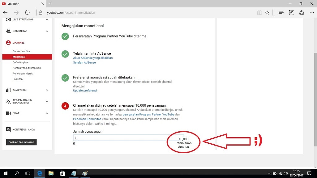Cara Mendaftar Ke Adsense Melalui Youtube Indeed lately is being sought by users around us, maybe one of you. Individuals are now accustomed to using the net in gadgets to see image and video information for inspiration, and according to the title of the post I will talk about about Cara Mendaftar Ke Adsense Melalui Youtube.