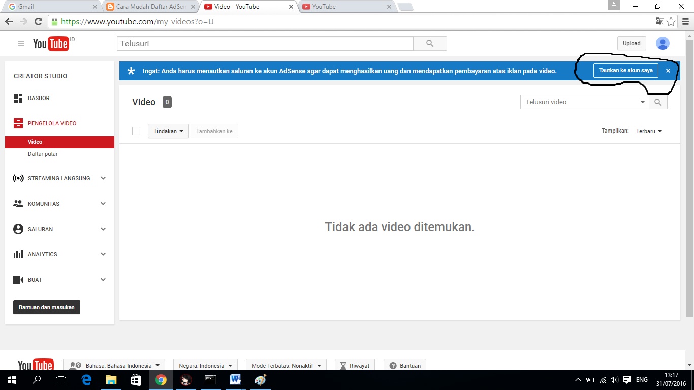 - Cara Mendaftar Google Adsense Melalui Youtube - Internet ... : Cara Daftar Google Adsense Untuk Youtube.
